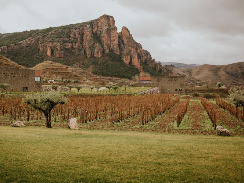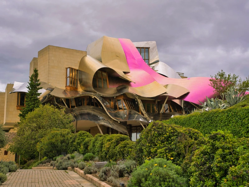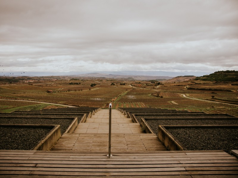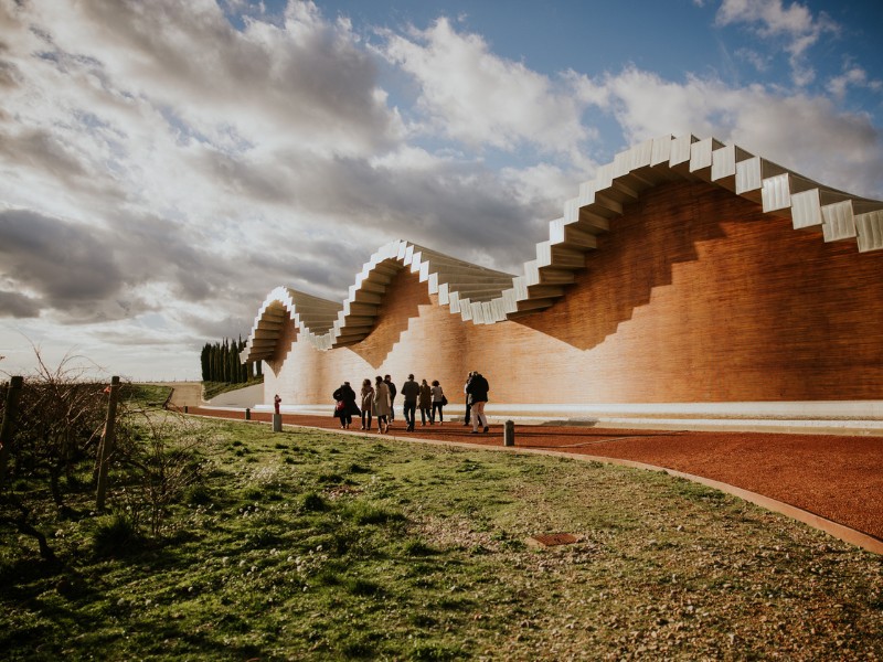 En el presente, el paisaje es una obra de arte total. Los viñedos son un mar ondulante que rodea edificios que parecen naves espaciales de titanio y cristal.