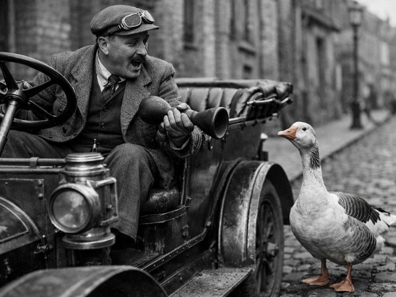 Las primeras bocinas imitaban sonidos animales —especialmente el graznido de los gansos— porque eran ruidos agudos y difíciles de ignorar. Aquellas bocinas de goma, que los conductores apretaban con la mano, producían un “honk” muy similar al que conocemos hoy.