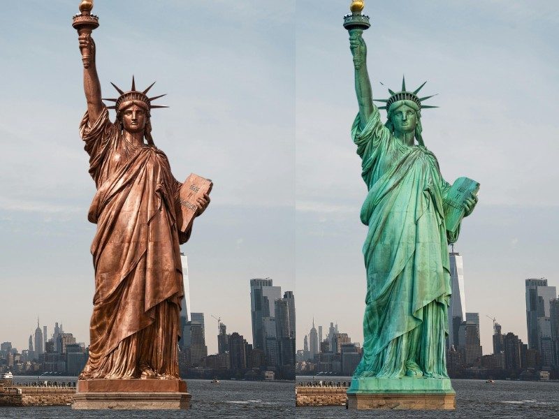 - Durante los primeros 5 a 7 años, la Estatua pasó de marrón a tonos más oscuros.